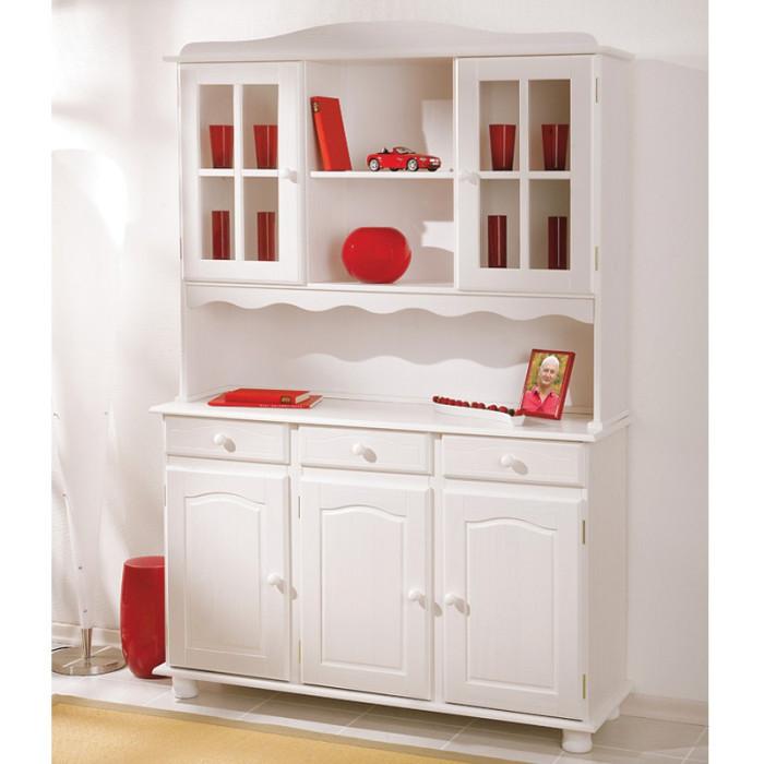 Vaisselier 3 Portes en Bois Massif Alienor 198cm Blanc