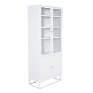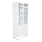 Informations Techniques : Dimensions : L. 80 x l. 41 x H. 190 cm Matières : Acier & Verre Spécificités : Élégant & Moderne Vaisselier sur pied 4 portes dont 2 vitrées Étagères intérieures Nombre de colis : 1 Poids max supporté : 50 kg Poids : 37 kg Couleur : Blanc