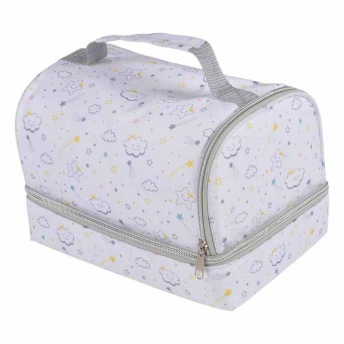 Informations Techniques : Dimensions : L. 16 x l. 16 x H. 23 cm Matière : Polyester Spécificités : Nomade & Isotherme Vanity 2 Compartiments Pour Bébé A Motifs Facile d'Utilisation & d'Entretien Poids : 0,13 kg Couleur : Blanc