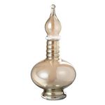 Informations Techniques : Dimensions : L. 17,5 x l. 17,5 x H. 38 cm Matière : 100% Verre Spécificités : Déco & Élégant Vase design fiole Avec bouchon Vendu à l'unité Poids : 1,15 kg Couleur : Beige