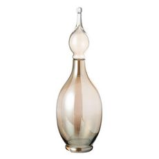 Informations Techniques : Dimensions : L. 17 x l. 17 x H. 53 cm Matière : 100% Verre Spécificités : Déco & Élégant Vase design fiole Avec bouchon Vendu à l'unité Poids : 1,78 kg Couleur : Beige