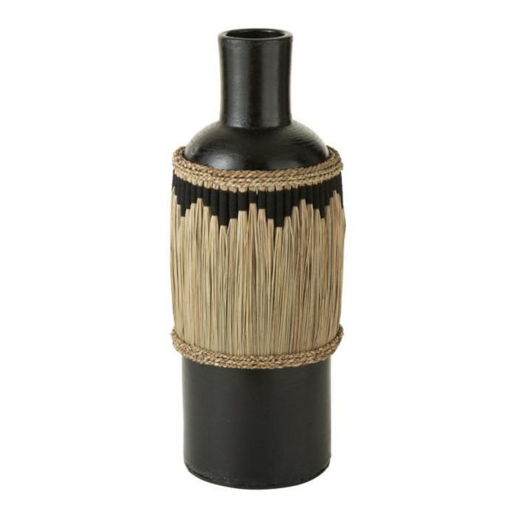 Informations Techniques : Dimensions : L. 28 x l. 28 x H. 75 cm Matières : 75% Terre cuite & 25% Herbes Spécificités : Pratique & Tendance Vase bouteille Avec herbe sechée décorative Forme ronde Vendu à l'unité Poids : 11,86 kg Couleur : Noir