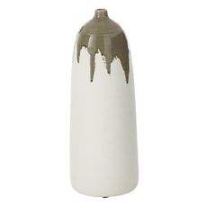 Informations Techniques : Dimensions : D. 18 x H. 47 cm Matière : Argile Spécificités : Déco & Épuré Vase bouteille bicolore Effet peinture coulante Vendu à l'unité Poids : 3,09 kg Couleur : Blanc & Vert Olive