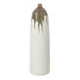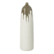 Informations Techniques : Dimensions : D. 20 x H. 67,5 cm Matière : Argile Spécificités : Déco & Épuré Vase bouteille bicolore Effet peinture coulante Vendu à l'unité Poids : 3,81 kg Couleur : Blanc & Vert Olive