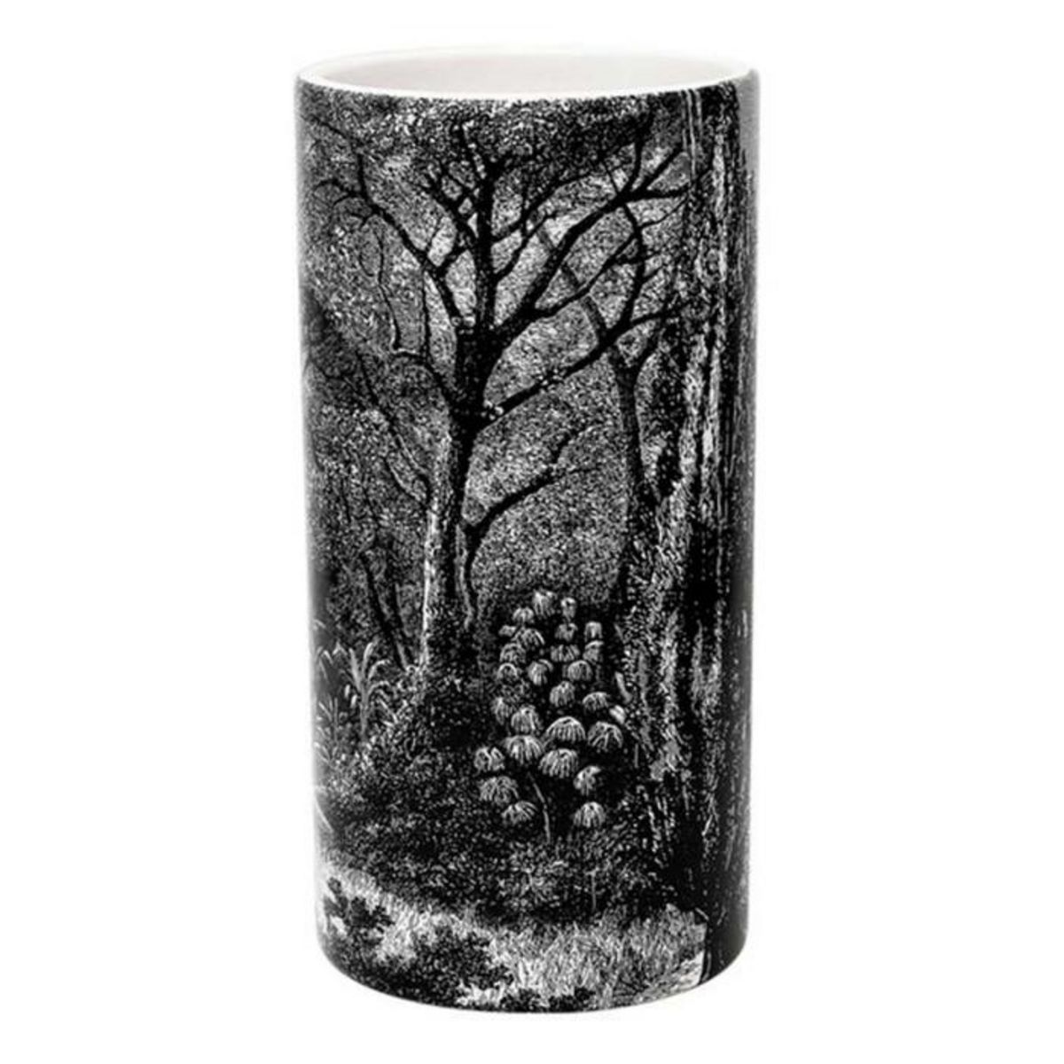 Informations Techniques : Dimensions : D. 12,8 x H. 25 cm Matière : 100% Dolomite Spécificités : Déco & Moderne Vase cylindrique Imprimé forêt Poids : 1,1 kg Couleur : Noir & Blanc