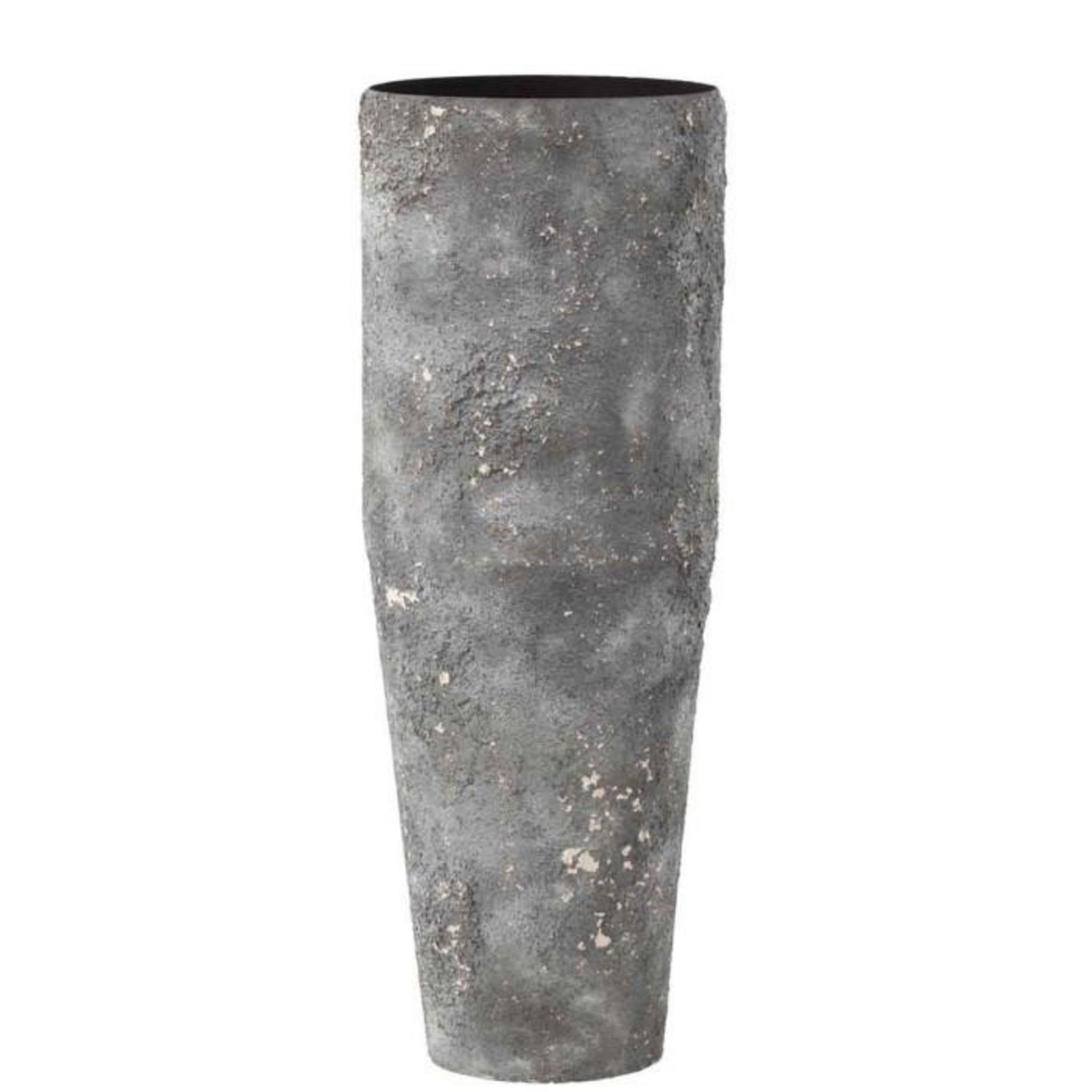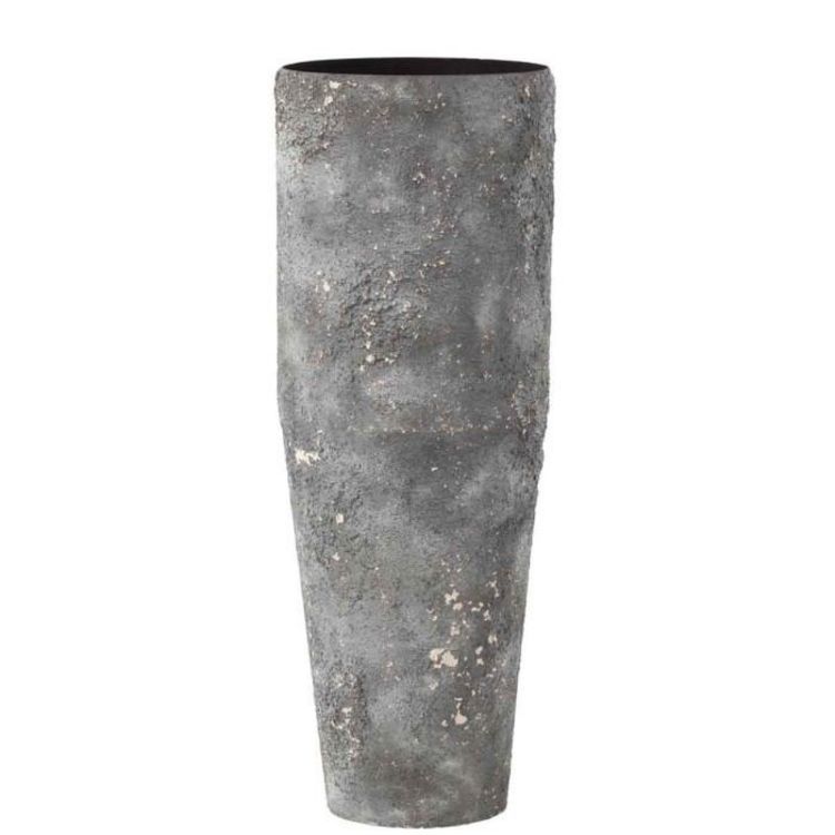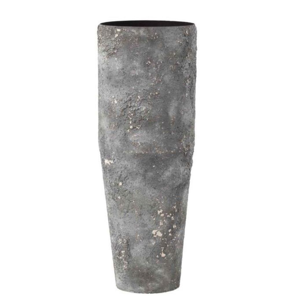 Informations Techniques : Dimensions : D. 23 x H. 70 cm Matière : Métal Spécificités : Pratique & Utile Vase Design Forme Ronde Texture Rugueuse Poids : 2,46 kg Couleur : Gris