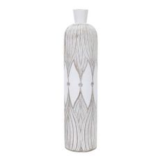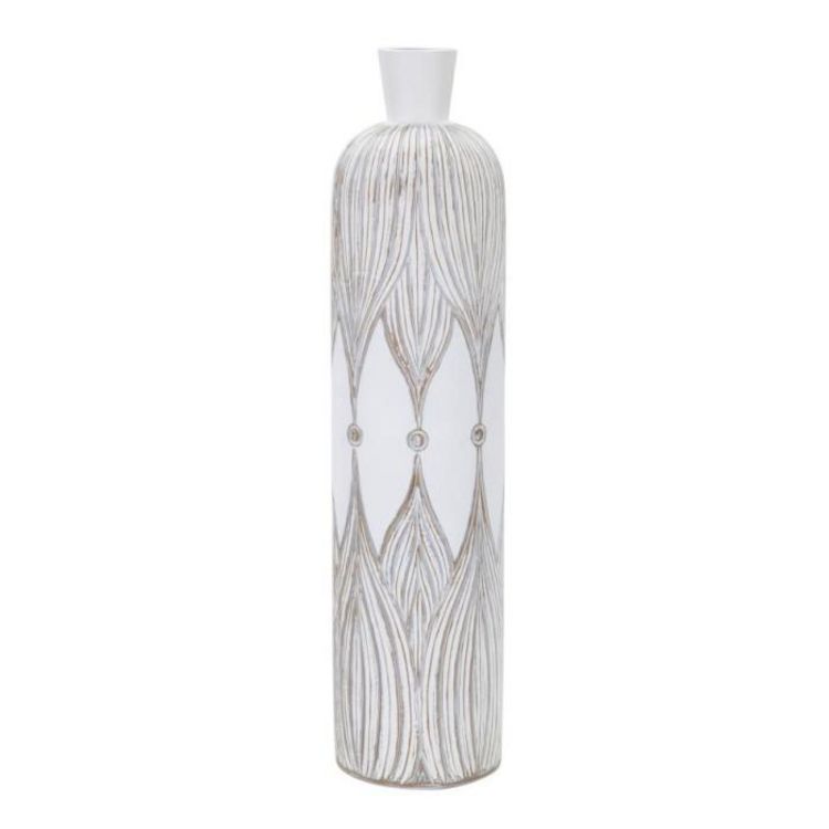 Informations Techniques : Dimensions : D. 15 x H. 60 cm Ouverture du trou : D. 4 cm Matière : Polyrésine Spécificités : Élégant & Design Vase déco Motifs abstraits Poids : 2,4 kg Couleur : Blanc