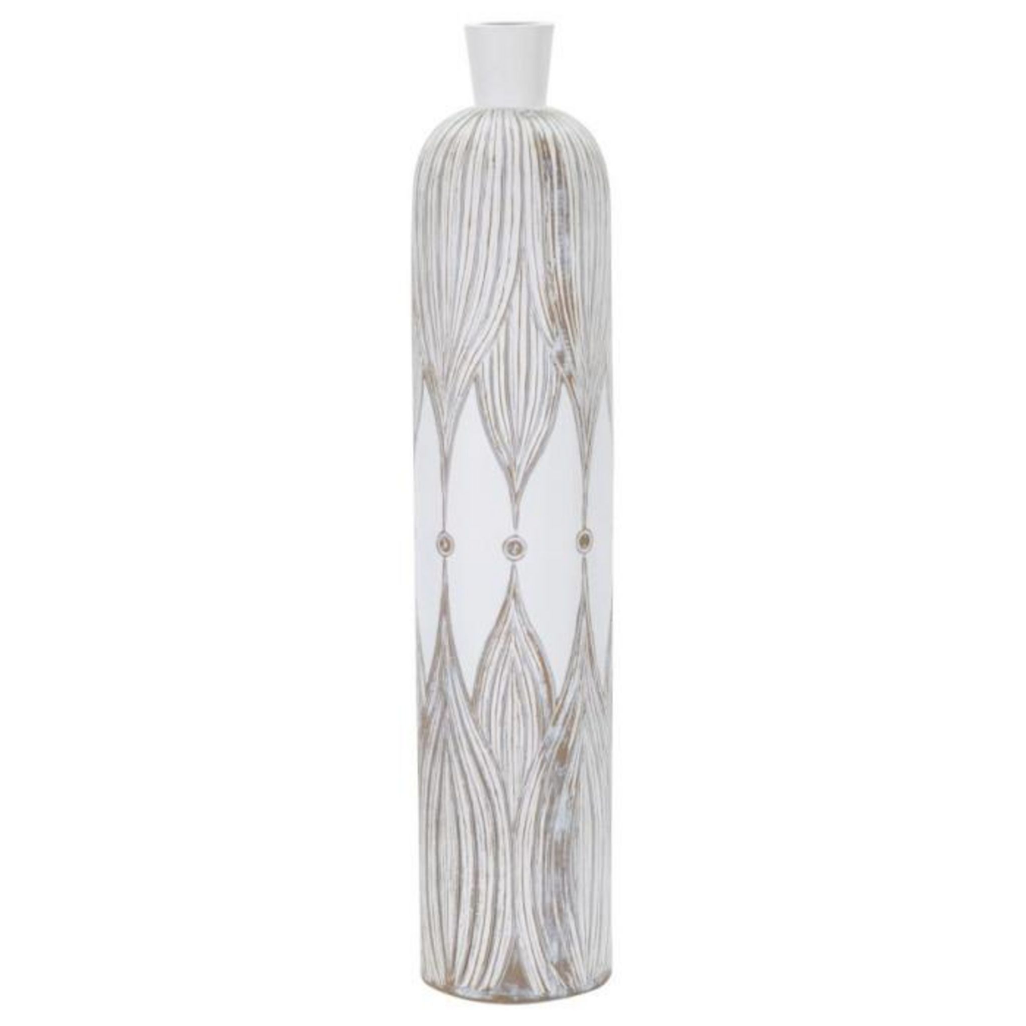 Informations Techniques : Dimensions : D. 15,5 x H. 74 cm Ouverture du trou : D. 4 cm Matière : Polyrésine Spécificités : Élégant & Design Vase déco Motifs abstraits Poids : 3,32 kg Couleur : Blanc
