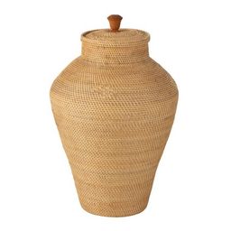 Vase Déco avec Couvercle Rotin 70cm Naturel