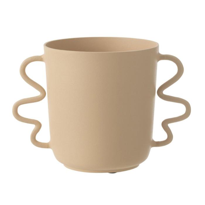 Informations Techniques : Dimensions : L. 34 x l. 21,5 x H. 23 cm Matière : Aluminium Spécificités : Pratique & Tendance Vase déco Avec anses design vagues Usage intérieur/extérieur Poids : 2 kg Couleur : Beige