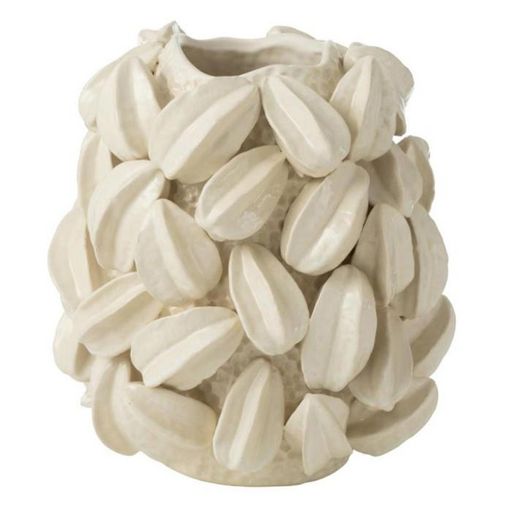Informations Techniques : Dimensions : L. 32 x l. 30,5 x H. 38 cm Matière : 100% Argile Spécificités : Déco & Original Vase ovale uni Fèves de cacao en relief Vendu à l'unité Poids : 7,9 kg Couleur : Beige