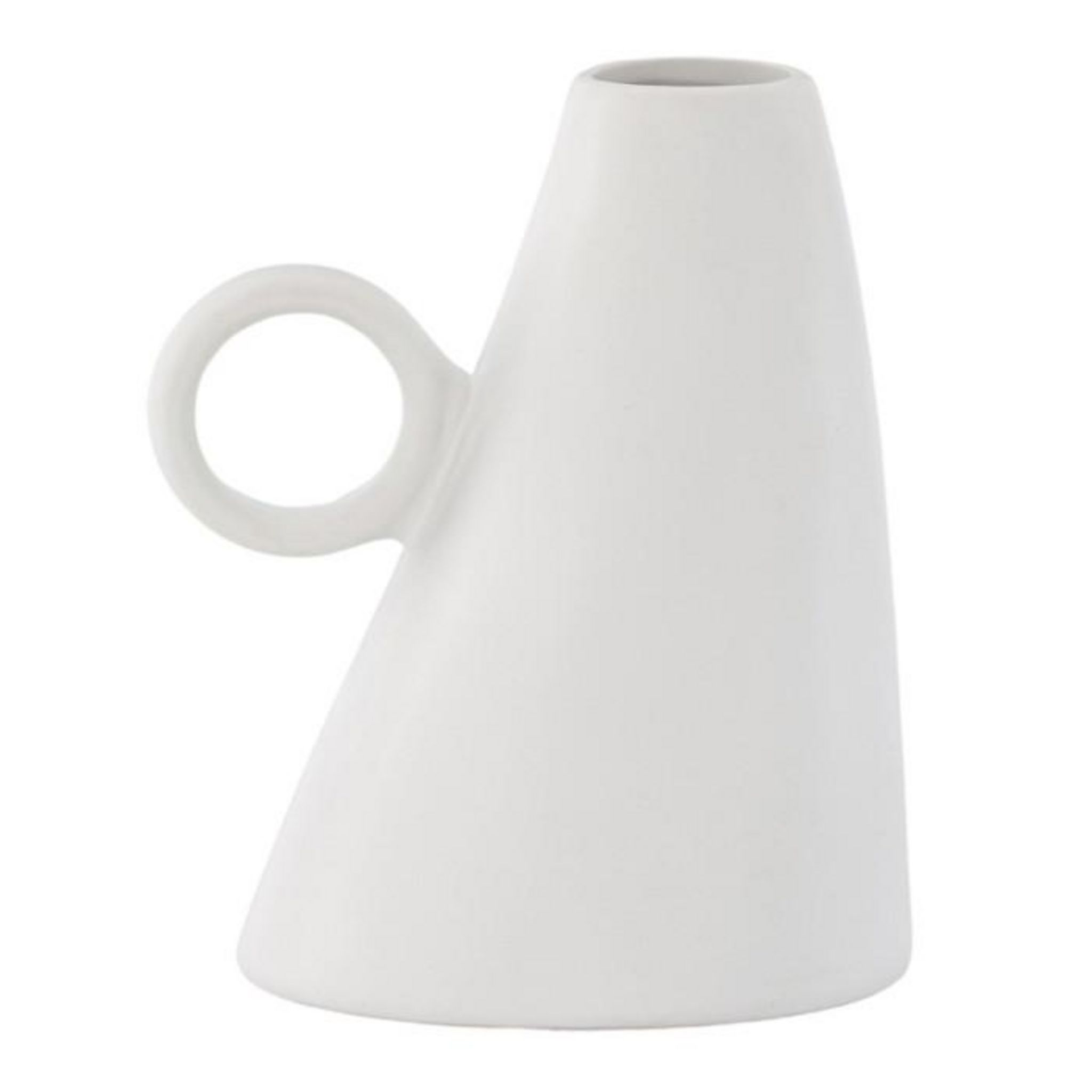 Informations Techniques : Dimensions : L. 14 x l. 13 x H. 17 cm Matière : Grès Spécificités : Moderne & Élégant Vase déco Avec anse Poids : 0,75 kg Couleur : Blanc
