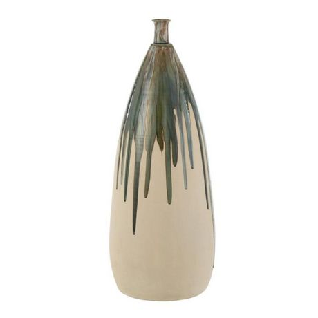 Informations Techniques : Dimensions : L. 27 x l. 27 x H. 73 cm Matière : Céramique Spécificités : Pratique & Tendance Vase déco Design peinture coulante Forme ovale Vendu à l'unité Poids : 8,89 kg Couleur : Vert