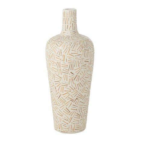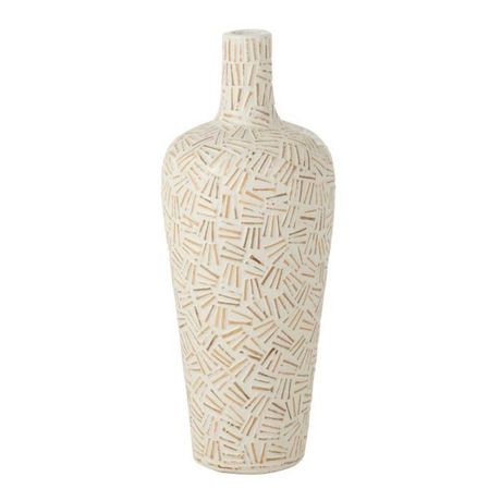 Informations Techniques : Dimensions : L. 25 x l. 25 x H. 60 cm Matières : 95% Ciment & 5% Bois (Albasie) Spécificités : Pratique & Tendance Vase déco Style moderne Forme ronde Poids : 7,3 kg Couleur : Blanc