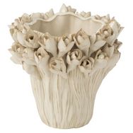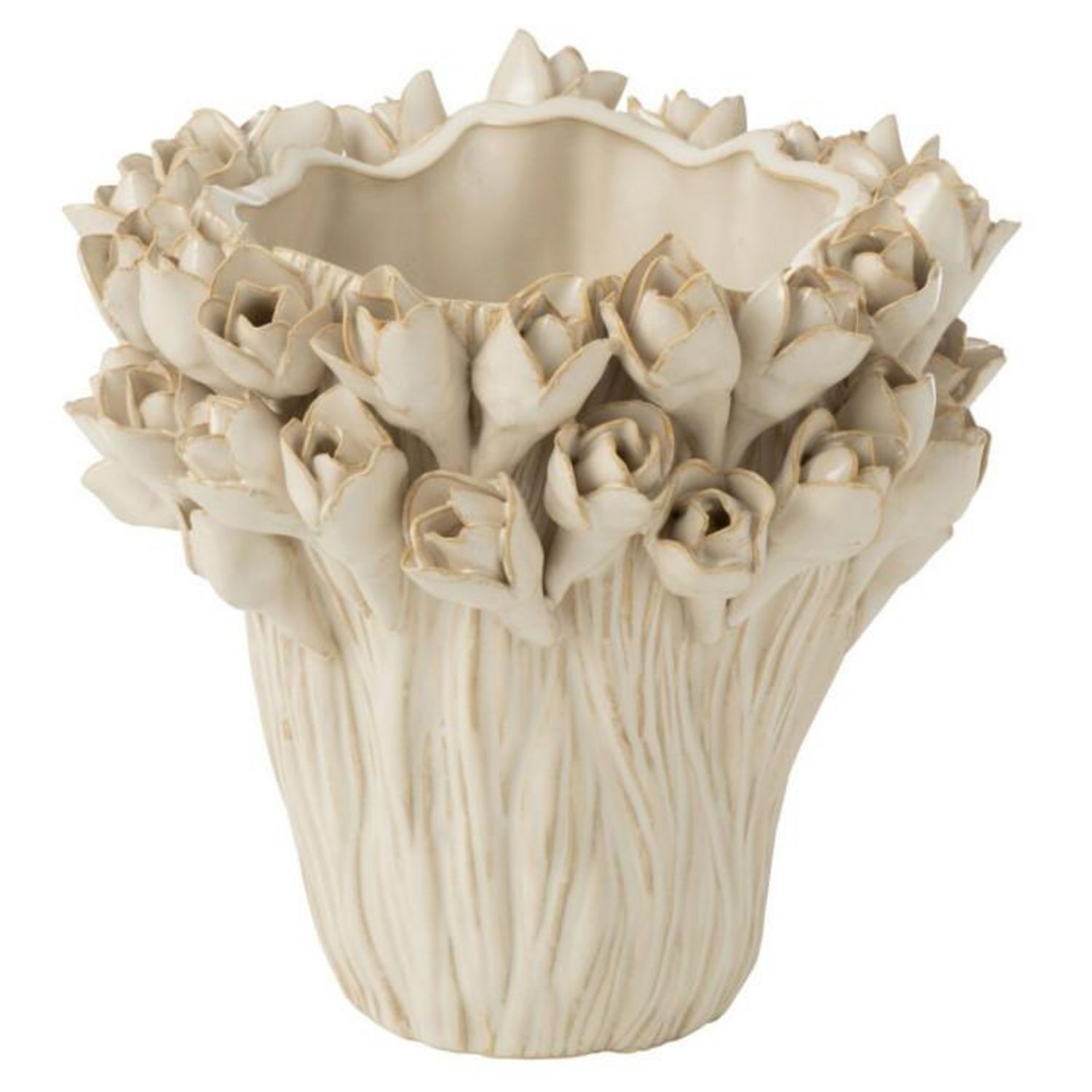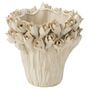 Informations Techniques : Dimensions : L. 20,5 x l. 20,5 x H. 19 cm Matière : 100% Grès Spécificités : Original & Utile Vase décoratif Design fleurs en relief Vendu à l'unité Poids : 1,63 kg Couleur : Blanc