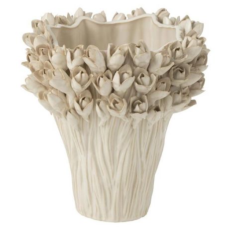 Informations Techniques : Dimensions : L. 28 x l. 28 x H. 29 cm Matière : 100% Grès Spécificités : Original & Utile Vase décoratif Design fleurs en relief Vendu à l'unité Poids : 3,62 kg Couleur : Blanc