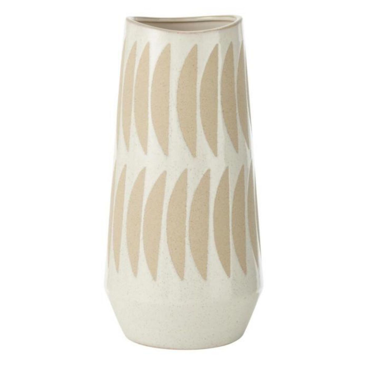 Vase Déco en Grès Kai 40cm Beige & Blanc