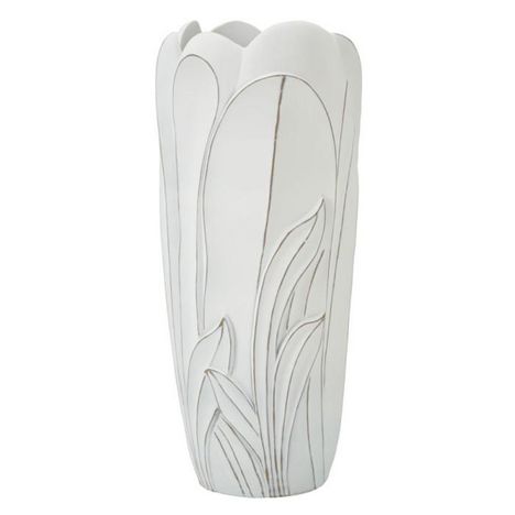Informations Techniques : Dimensions : L. 30,5 x l. 30,5 x H. 69 cm Ouverture : D. 23 cm Matière : Polyrésine Spécificités : Déco & Moderne Vase unicolore Motifs en relief Poids : 7,2 kg Couleur : Blanc