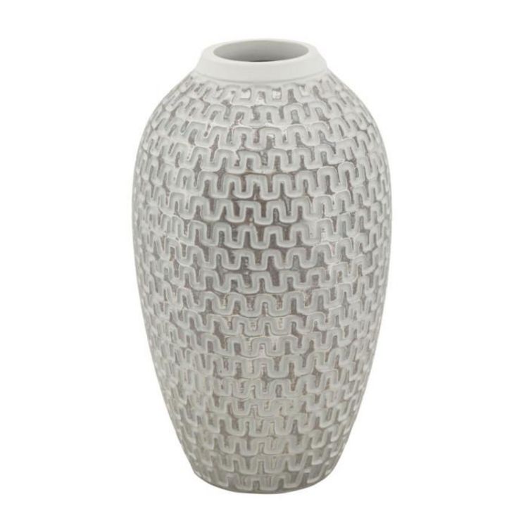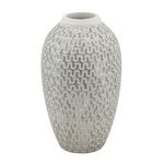 Informations Techniques : Dimensions : D. 19,5 x H. 34 cm Ouverture du trou : D. 7 cm Matière : Polyrésine Spécificités : Élégant & Esthétique Vase déco Motifs géométriques Poids : 1,75 kg Couleur : Blanc