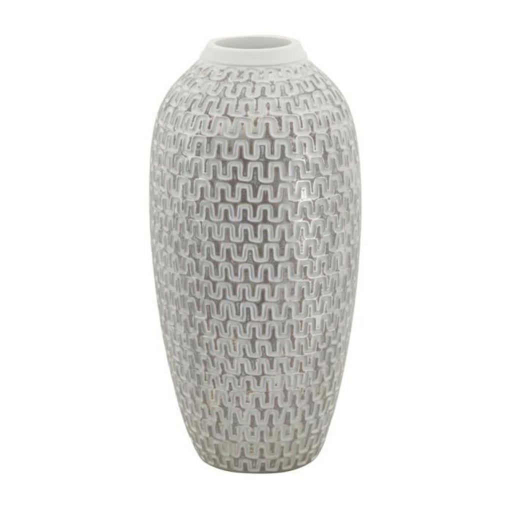 Informations Techniques : Dimensions : D. 21 x H. 43 cm Ouverture du trou : D. 7 cm Matière : Polyrésine Spécificités : Élégant & Esthétique Vase déco Motifs géométriques Poids : 2,2 kg Couleur : Blanc