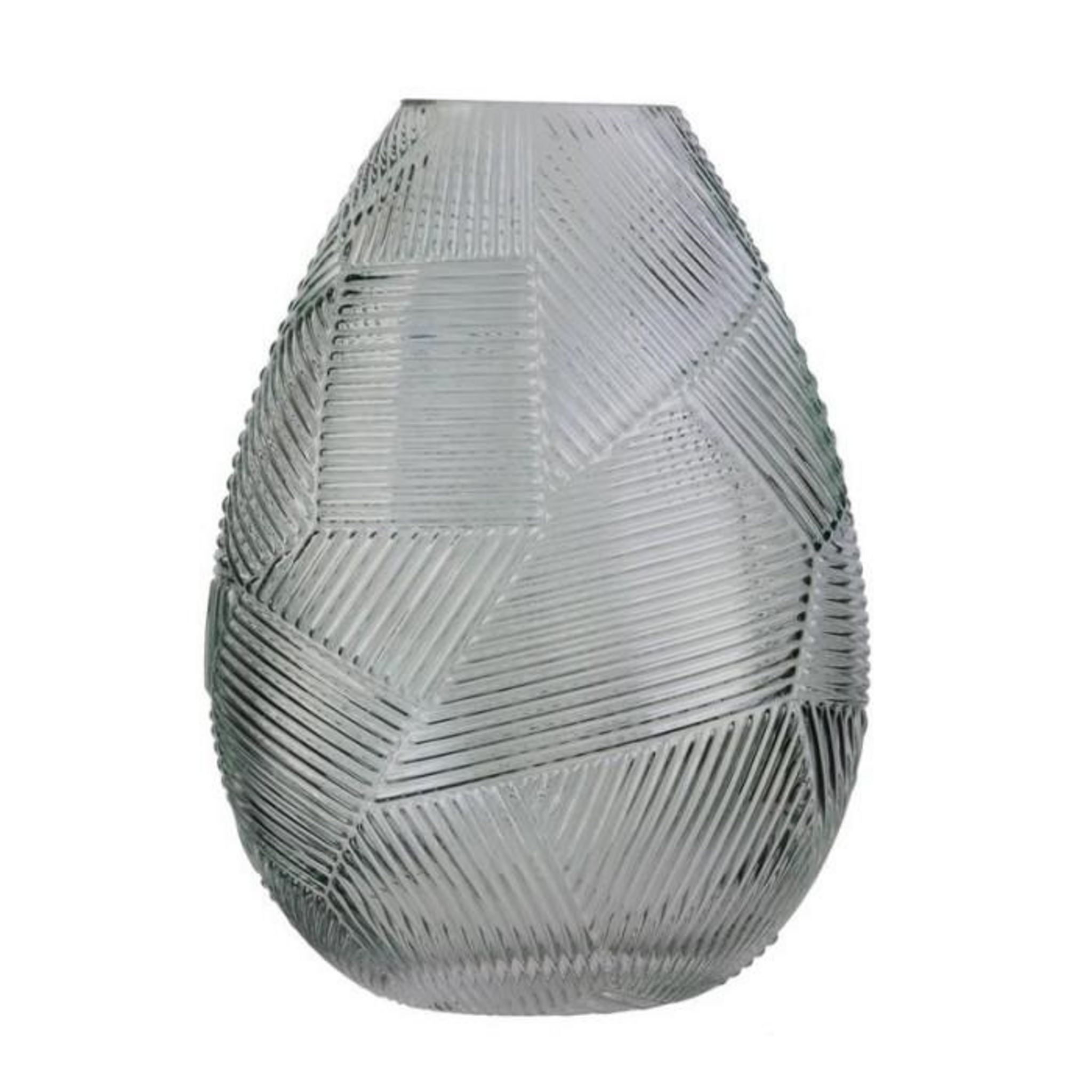 Informations Techniques : Dimensions : L. 16,5 x l. 11,5 x H. 21,5 cm Matière : Verre Spécificités : Pratique & Astucieux Vase déco Vase en relief Facile d'Utilisation Couleur : Gris