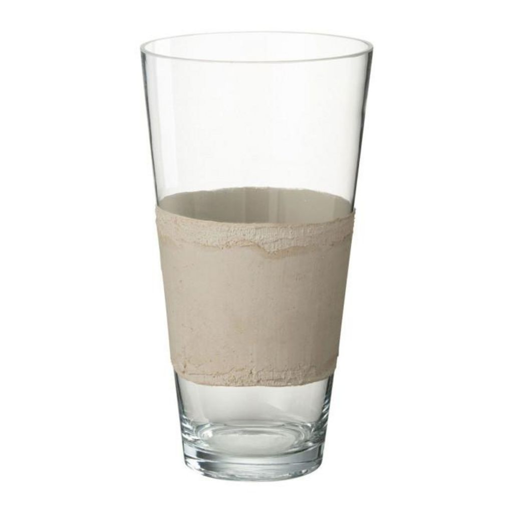 Vase Déco en Verre Delph 35cm Transparent & Beige
