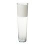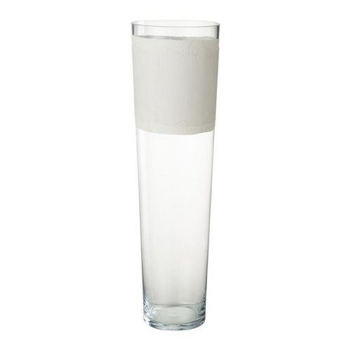 Informations Techniques : Dimensions : D. 17 x H. 60 cm Matière : Verre Spécificités : Design & Tendance Vase déco Bande colorée Forme ronde Vendu à l'unité Poids : 1,4 kg Couleur : Transparent & Blanc
