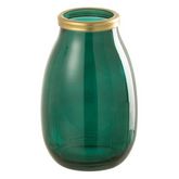 Informations Techniques : Dimensions : D. 18 x H. 28 cm Matière : 100% Verre Spécificités : Déco & Coloré Bord doré Forme ronde Vendu à l'unité Poids : 0,86 kg Couleur : Vert