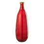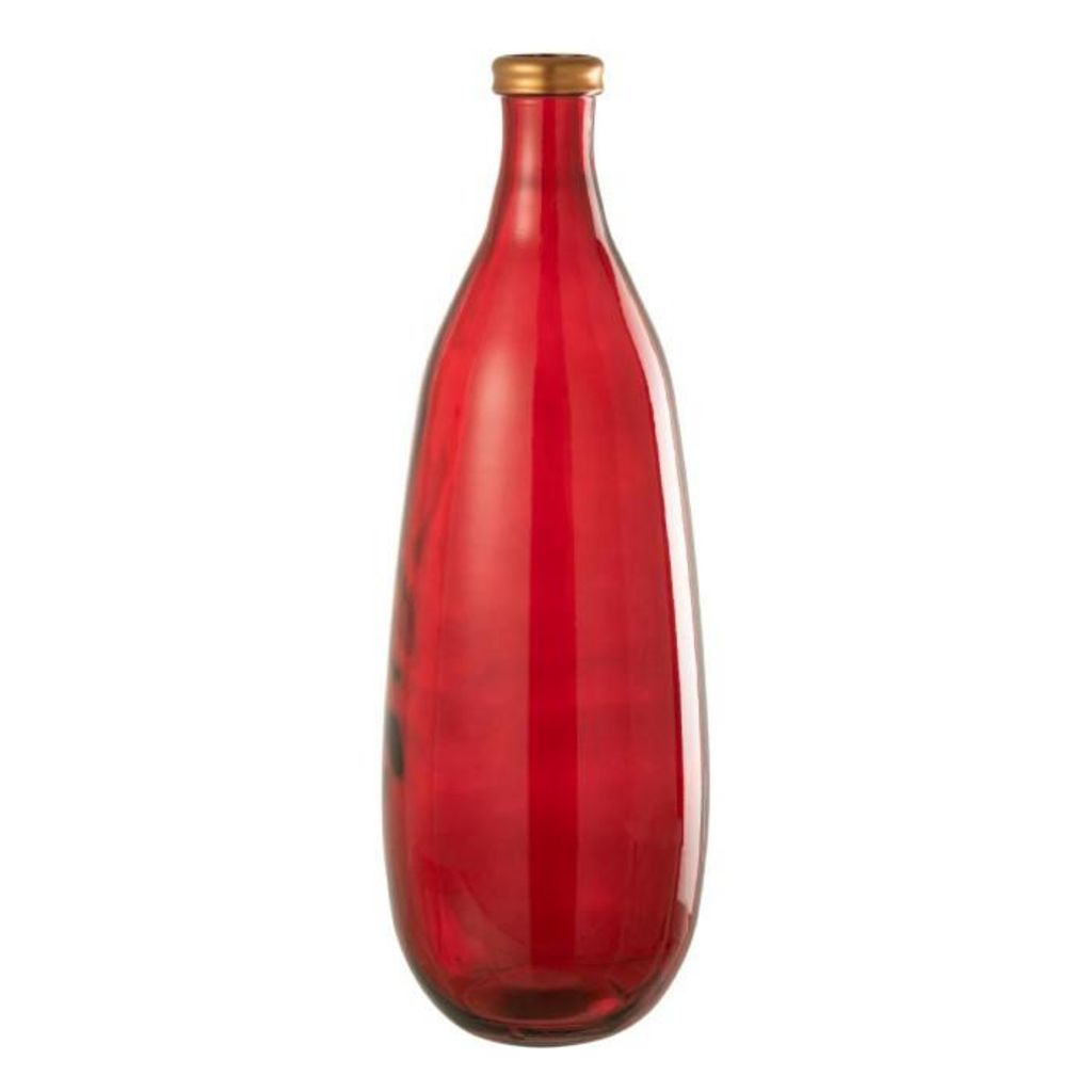 Informations Techniques : Dimensions : D. 25 x H. 75 cm Matière : 100% Verre Spécificités : Déco & Coloré Design bouteille Bord doré Forme ronde Poids : 6,45 kg Couleur : Rouge