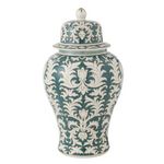 Informations Techniques : Dimensions : L. 29 x l. 29 x H. 51 cm Matière : 100% Porcelaine Spécificités : Déco & Original Vase avec couvercle Imprimé fantaisie Vendu à l'unité Poids : 6 kg Couleur : Vert & Blanc