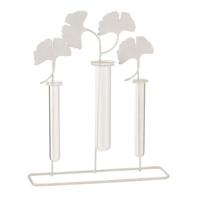 Informations Techniques : Dimensions : L. 26,5 x l. 7,8 x H. 32 cm Matière : Métal Spécificités : Tendance & Moderne Vase pour Fleurs 3 Porteurs A Poser Poids : 0,3 kg Couleur : Blanc