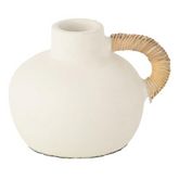 Informations Techniques : Dimensions : L. 18 x l. 33 x H. 36 cm Matières : 90% Terre cuite & 10% Rotin Spécificités : Pratique & Tendance Vase déco Design pot Avec poignée Vendu à l'unité Forme ronde Poids : 1,8 kg Couleur : Blanc & Naturel