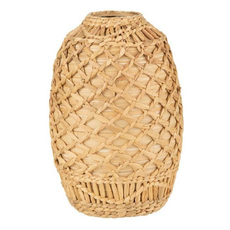 Informations Techniques : Dimensions : D. 24 x H. 37 cm Matières : 60% Bambou & 40% Jacinthe d'eau Spécificités : Déco & Tendance Vase style tressé Forme ronde Vendu à l'unité Poids : 0,7 kg Couleur : Naturel