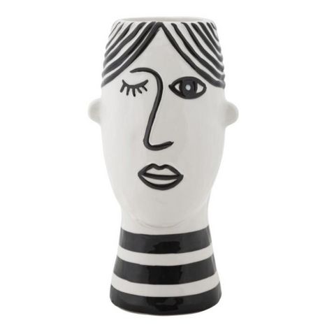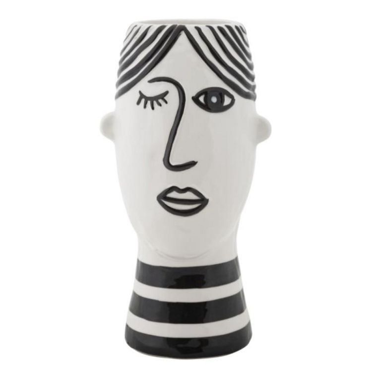 Vase Déco Visage en Porcelaine Face 26cm Blanc & Noir