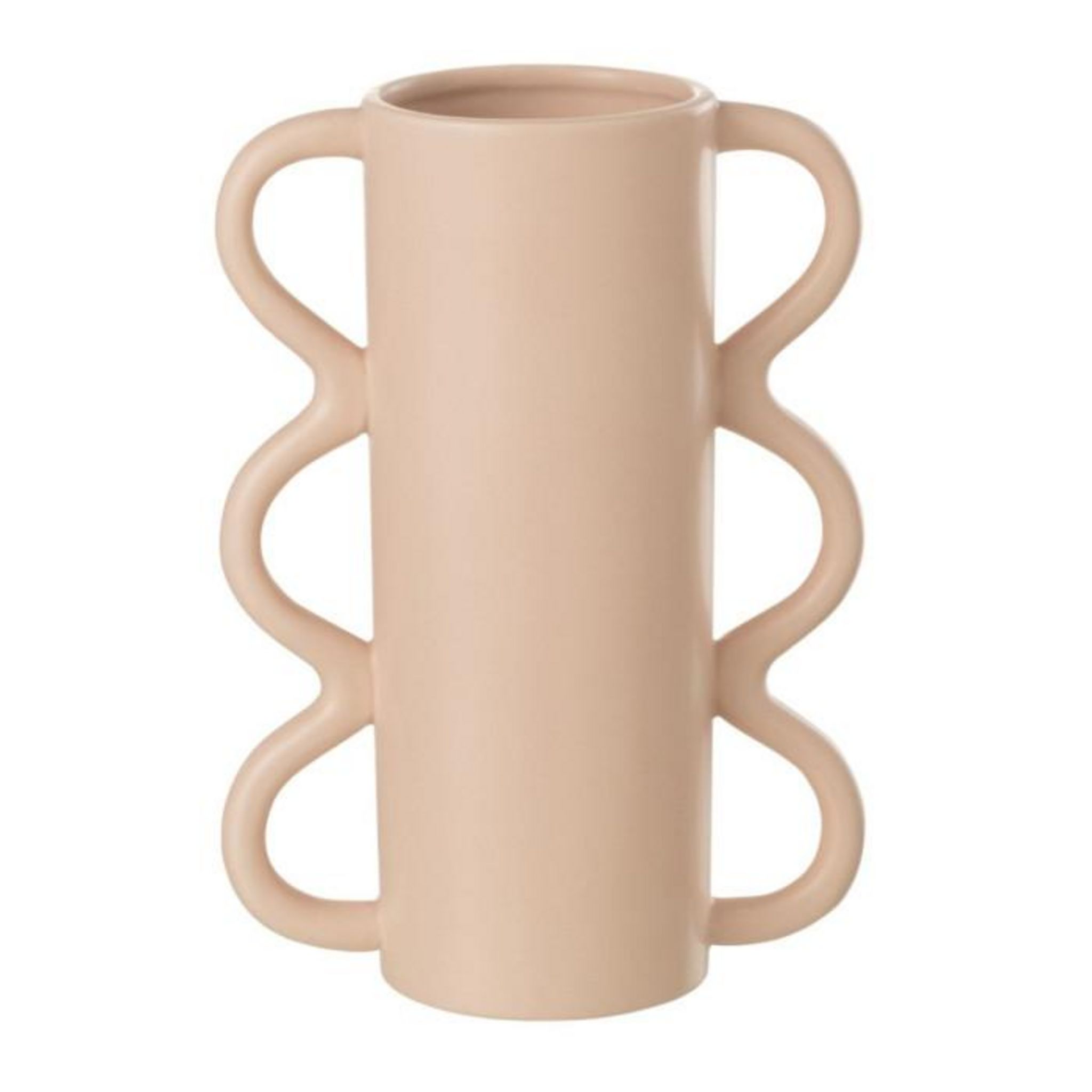 Informations Techniques : Dimensions : L. 19 x l. 10 x H. 26,5 cm Matière : Dolomite Spécificités : Pratique & Tendance Vase déco Avec anses design vague Vendu à l'unité Poids : 0,94 kg Couleur : Rose