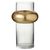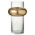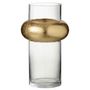 Informations Techniques : Dimensions : D. 14 x H. 25 cm Matière : Verre Spécificités : Pratique & Chic Vase Design Forme Ronde Bague Cylindrique en Haut Poids : 0,6 kg Couleur : Transparent & Or