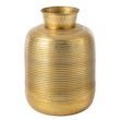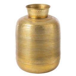 Informations Techniques : Dimensions : D. 31 x H. 45 cm Matière : Aluminium Spécificités : Tendance & Chic Vase Déco Forme Ronde Design Anneaux Poids : 1,5 kg Couleur : Or