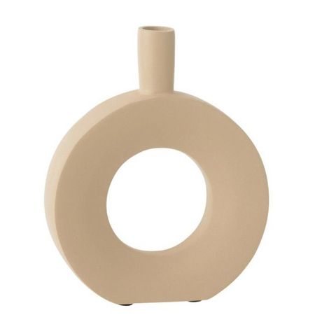 Informations Techniques : Dimensions : L. 17,5 x l. 3,5 x H. 22 cm Matière : 100% Aluminium Spécificités : Pratique & Tendance Vase déco Design cercle Usage intérieur/extérieur Vendu à l'unité Poids : 0,8 kg Couleur : Beige