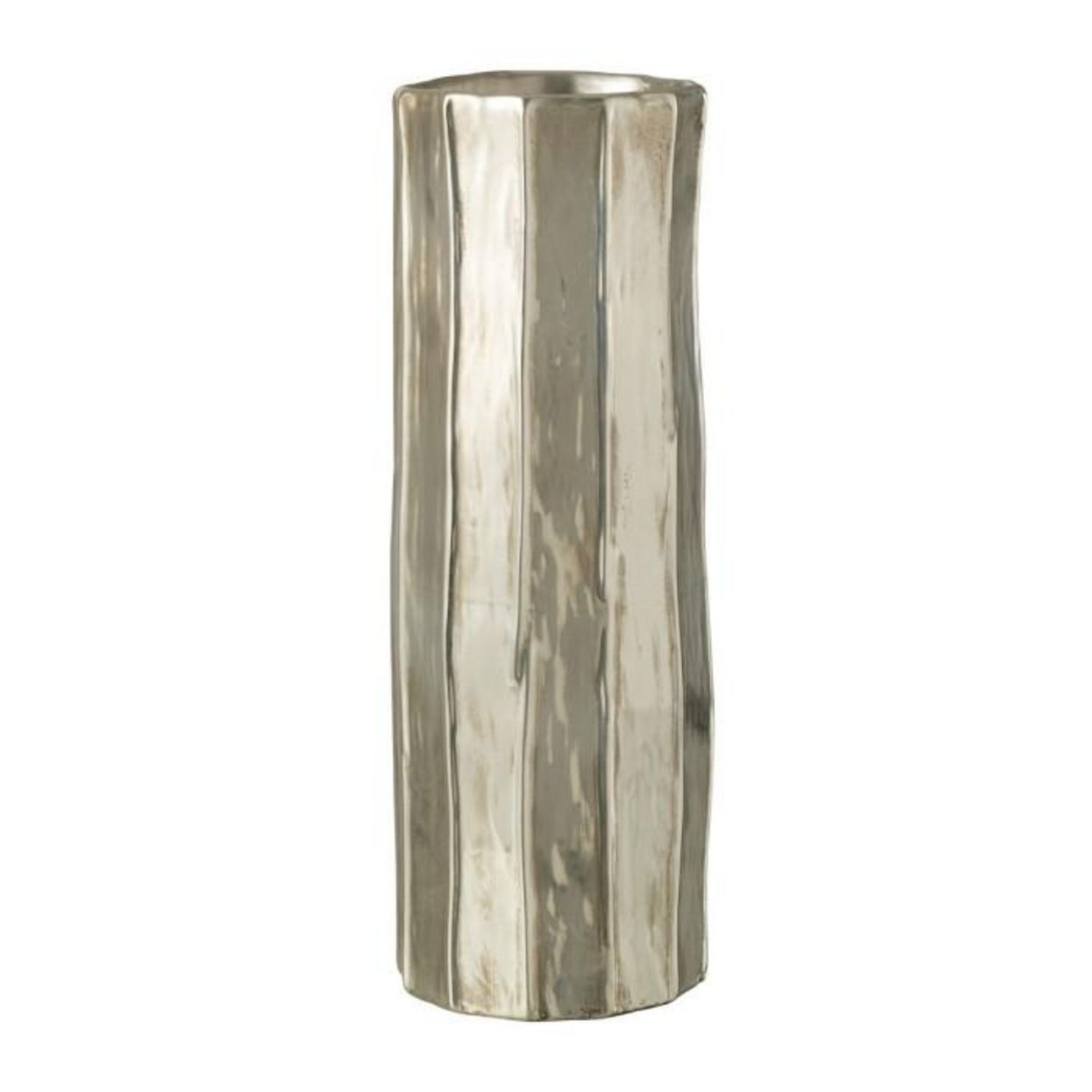 Informations Techniques : Dimensions : D. 16,5 x H. 50 cm Matière : Argile Spécificités : Déco & Utile Vase design Forme ronde Vendu à l'unité Poids : 2,73 kg Couleur : Argent