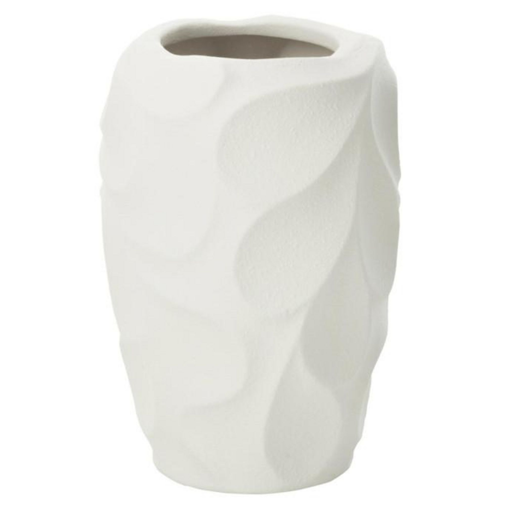 Informations Techniques : Dimensions : L. 21,5 x l. 21,5 x H. 32 cm Matière : Argile Spécificités : Élégant & Moderne Vase déco unicolore Design en relief Vendu à l'unité Poids : 2,56 kg Couleur : Blanc