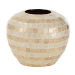 Informations Techniques : Dimensions : D. 26,5 x H. 21,5 cm Matières : Bambou, Roseau & Rotin Spécificités : Pratique & Chic Vase Déco Forme Ronde Design Boule Motif Mosaïque Poids : 1,25 kg Couleur : Beige