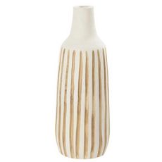 Informations Techniques : Dimensions : D. 17 x H. 45 cm Matière : Bois Spécificités : Tendance & Chic Vase design Forme ronde Vendu à l'unité Poids : 1,4 kg Couleur : Blanc & Naturel