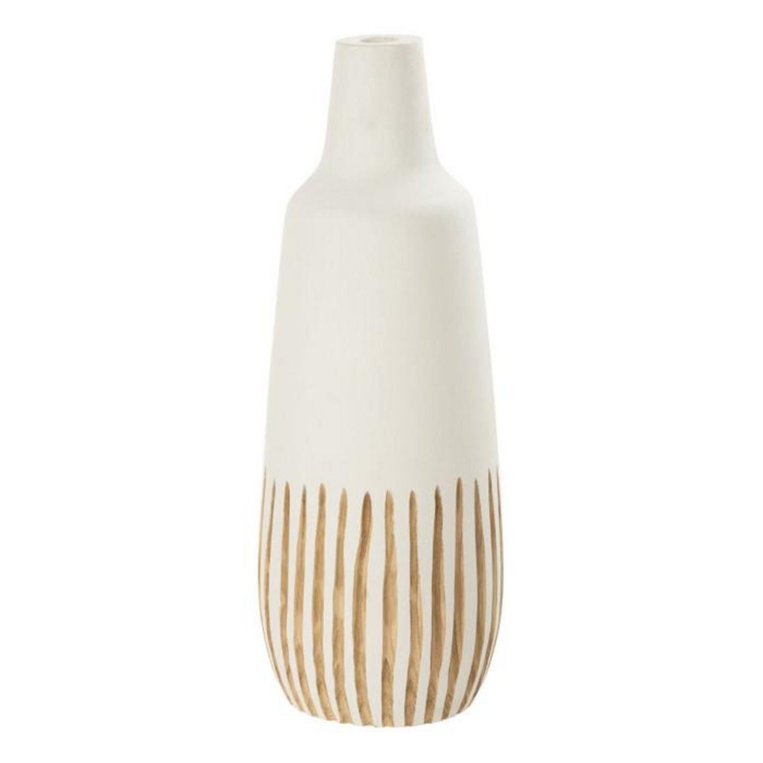 Informations Techniques : Dimensions : D. 21 x H. 56 cm Matière : Bois Spécificités : Tendance & Chic Vase design Forme ronde Vendu à l'unité Poids : 2,41 kg Couleur : Blanc & Naturel