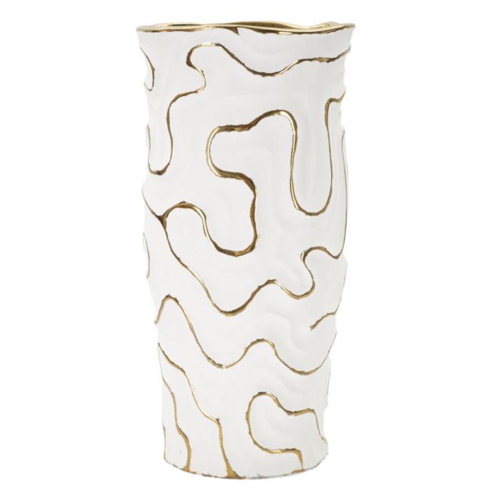 Informations Techniques : Dimensions : D. 16 x H. 32,5 cm Ouverture du trou : D. 14 cm Matière : Céramique Spécificités : Élégant & Raffiné Vase design bicolore Motifs lignes Poids : 1,96 kg Couleur : Blanc & Or