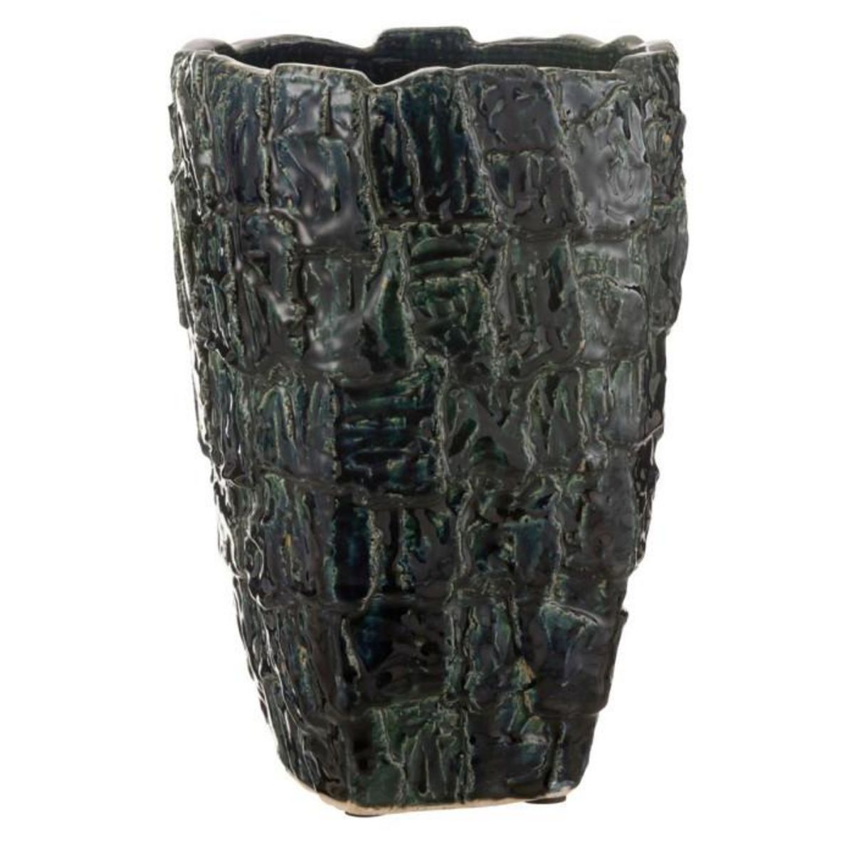 Informations Techniques : Dimensions : L. 25 x l. 25 x H. 36,5 cm Matière : Argile Spécificités : Déco & Original Vase design Vendu à l'unité Poids : 6,73 kg Couleur : Vert Pétrole
