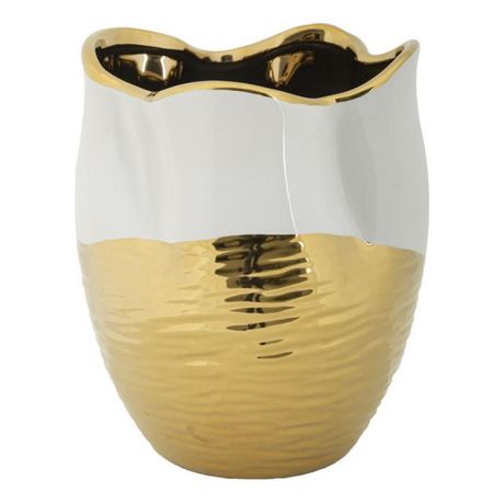 Informations Techniques : Dimensions : D. 20 x H. 25 cm Matière : Céramique Spécificités : Chic & Moderne Vase déco Design bicolore Poids : 2 kg Couleur : Blanc & Or