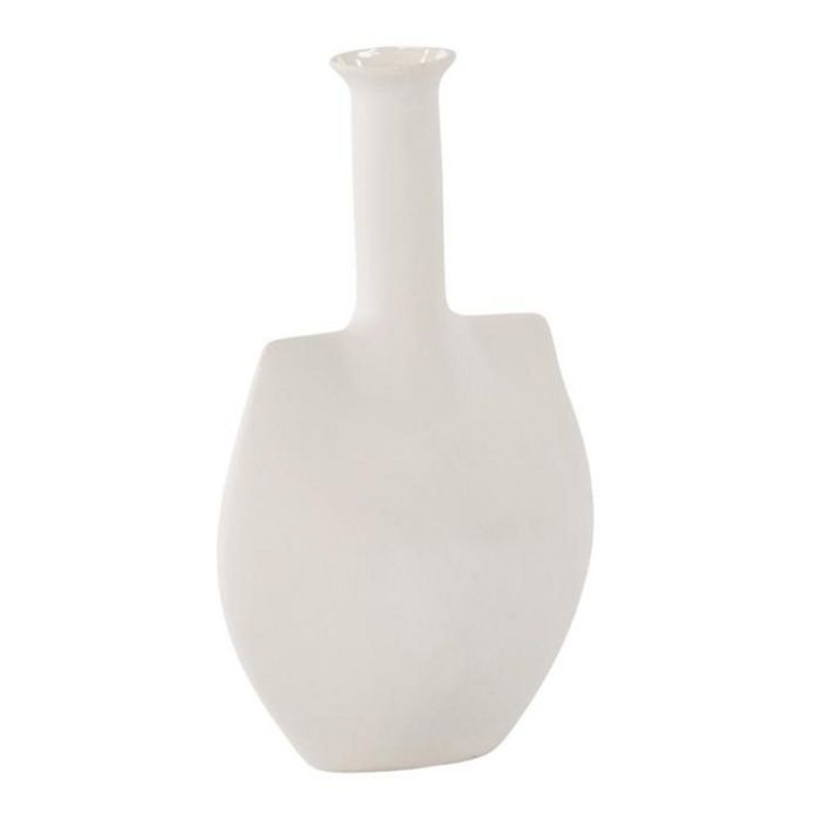 Informations Techniques : Dimensions : L. 14 x l. 8 x H. 22 cm Matière : Grès Spécificités : Moderne & Original Vase design Avec long col Poids : 0,4 kg Couleur : Blanc Cassé