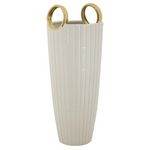 Informations Techniques : Dimensions : D. 18 x H. 45 cm Matière : Céramique Spécificités : Élégant & Épuré Vase déco Design bicolore Poids : 2,35 kg Couleur : Blanc & Or