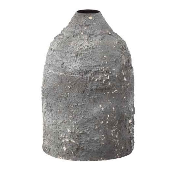Informations Techniques : Dimensions : D. 13 x H. 24 cm Matière : Métal Spécificités : Pratique & Utile Vase Design Forme Ronde Texture Rugueuse Poids : 0,54 kg Couleur : Gris