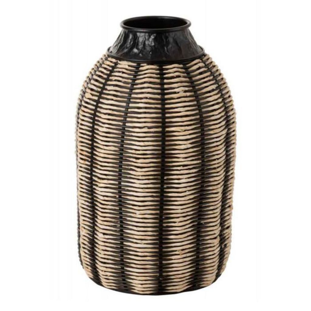 Vase Design en Rotin Corono 55cm Noir & Naturel